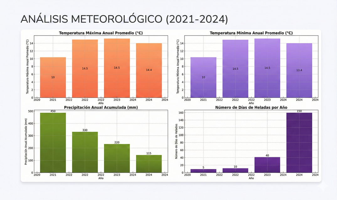 • Se generan gráficos coherentes de Tmax/Tmin/precipitación y días de heladas.